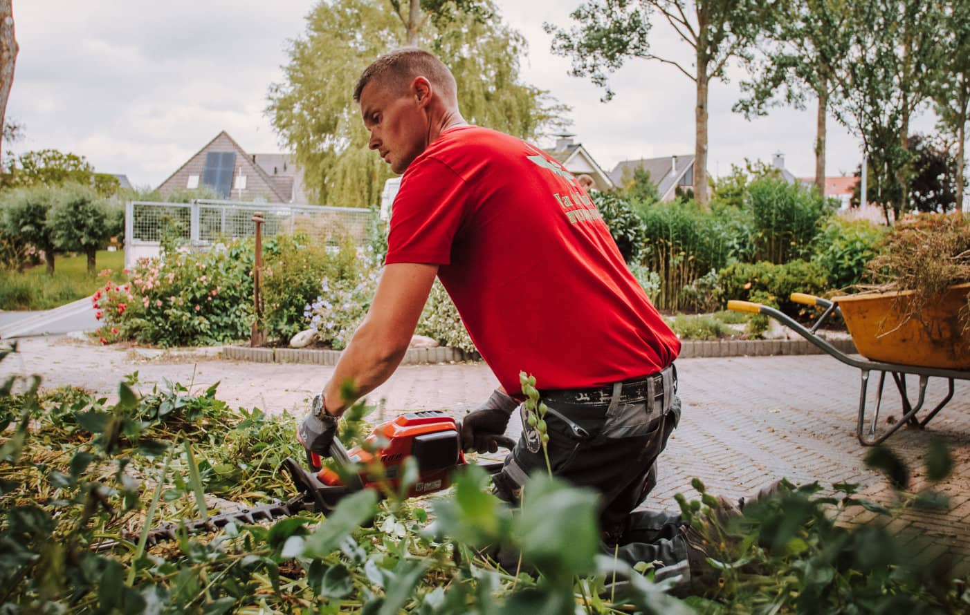 snoeiwerk; het gazon maaien; vaste planten opnieuw opzetten; bemesten en het reinigen van de bestrating.